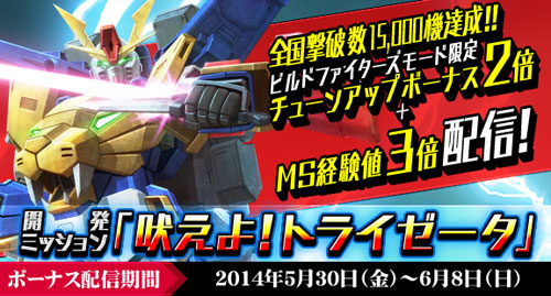 ガンダムトライエイジ「吠えよ!トライゼータ」全国撃破数15,000機達成!本日5/30よりボーナス配信開始!