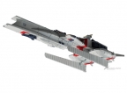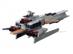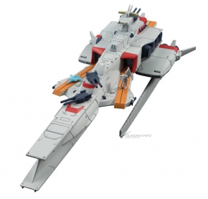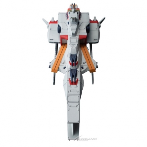 This realistic model, measuring 170mm from stem to stern, mounts four twin-mega particle cannon turrets, each capable of rotation. A quick parts swap allows for both port and starboard MS bays to be displayed with hatches open or closed.