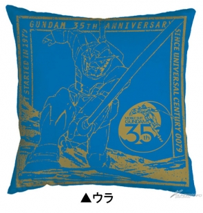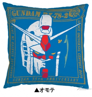 両面に「ガンダム」がデザインされているリバーシブル仕様のクッション。全長約50cm。