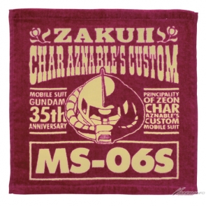 「ガンダム」、「ハロ」、「シャア専用ザク」を、モチーフにデザインしたおしゃれなハンドタオル。全長約30cm。