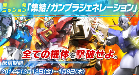 チャレンジミッション「クリスマス・ホワイト」では、『ガンダムビルドファイターズ』に登場するアイラ・ユルキアイネンが操る「ミスサザビー」をはじめとした白い機体が襲来。さらに、バトルに勝利することで、「MSの防御力が超ダウン(-400)、1/2の確率でクリティカル」の効果を持つ「アンテナ付きサンタ帽」が手に入ることがある。配信期間は12月25日(木)まで。