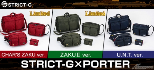 「STRICT-G」と「PORTER」のコラボレーションシリーズとしては過去に「シャアザクver.」、「ザクIIver.」、「連邦軍ver.」が発売されており、今回はその中から特に人気だったアイテムがリミテッドバージョンとして限定仕様に変更して発売される。また、新たなモデルとして「シャアザクver.」と「ザクIIver.」のショルダーバッグと、「連邦軍ver.」の3WAYブリーフケースが登場する。