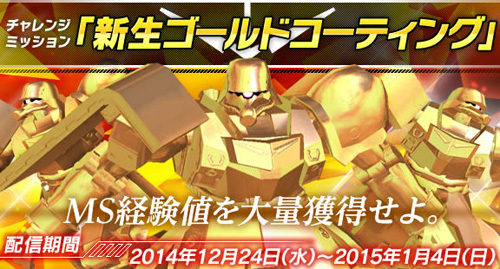 ミッションでは、金色に輝く「ギラ・ズール(ゴールドコーティング仕様)」が襲来。MS経験値を大量獲得するチャンスとなっているので、この機会をお見逃しなく。
