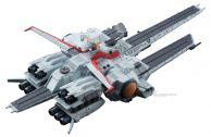 Damage to its starboard catapult and sternside from the clash with the Sinanju is replicated in full detail, and its complement is updated to four mobile suits, all to recreate its condition as it entered its final battle.