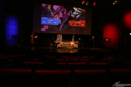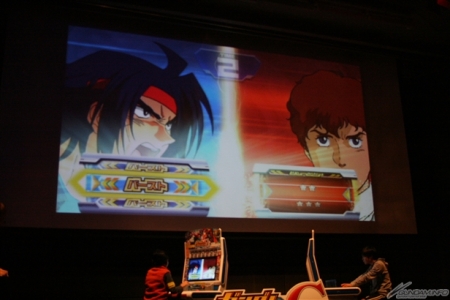 ▲手に汗を握るバーストバトル。決勝というだけあって目押しが可能な1回目、2回目は両者「互角」。勝利には時の運も重要だ。