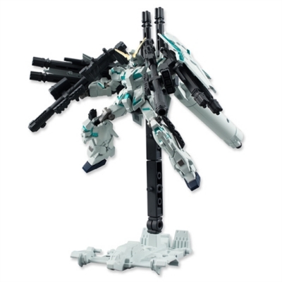 Included is a display stand modeled after its Base Jabber which can also be used as a weapon rack. Its weapons can be shared with the Unicorn Gundam 02 Banshee, and it can be displayed with its Shield Funnels deployed.