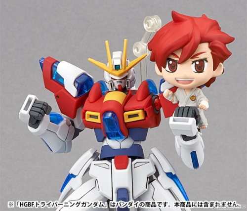 本アイテムは、『ガンダムビルドファイターズトライ』より、カミキ・セカイ、ホシノ・フミナなど全6体のキャラクターがカッコかわいくディフォルメされたもの。付属の台座に加えてアームが5種類付属し、これらを組み合わせることでガンプラ「HGBFシリーズ」に取り付けることが可能。ガンプラと一緒に飾ることで、作品の世界観をより魅力的に彩ることができるアイテムとなっている。