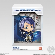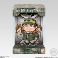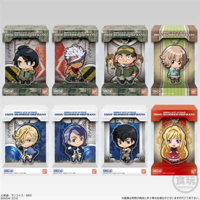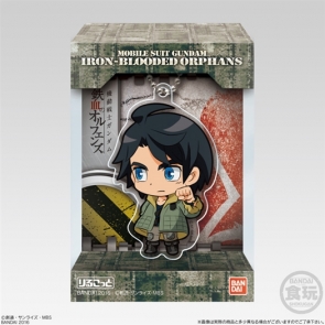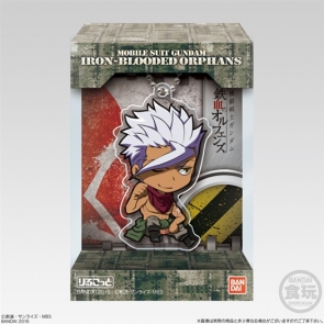セット内容は、ガム(ソーダ味)1個とアクリルキーホルダー1セット。ラインナップは「三日月・オーガス」、「オルガ・イツカ」、「ビスケット・グリフォン」、「アトラ・ミクスタ」、「マクギリス・ファリド」、「ガエリオ・ボードウィン」、「アイン・ダルトン」、「クーデリア・藍那・バーンスタイン」の全8種。