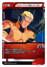 また、イベントやカウンターカードには「私、シャア・アズナブルが粛清しようというのだ!」など、他のカードゲームでは類を見ない「劇中の発言」を使用したカードが満載となっている。