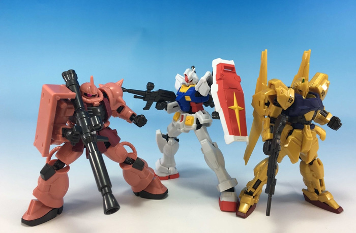 La troisième série a Gundam, Zaku de char, and Hyaku Shiki!