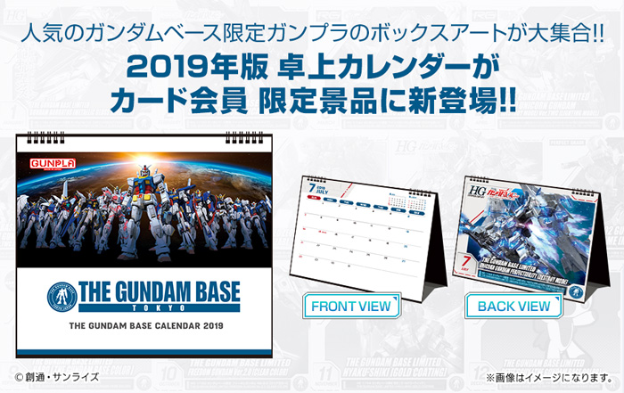 Le nouveau prix original est Base de Gundam populaire boîte de Gunpla limité l’art recueilli dans un calendrier de bureau "LE CALENDRIER DE BASE TOKYO GUNDAM 2019". Chacun d’eux coûte 15 points de la "Carte de membres".