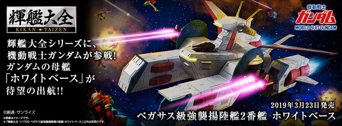 Par la Division BANDAI spiritueux collectionneurs "Kikan-Taizen" série va sortir le "1/1700 Pegasus-classe Assault Landing Craft White Base" De "Mobile Suit Gundam" le 23 mars, 2019 (Sam), prix est de ¥ 7,992 (TTC.)