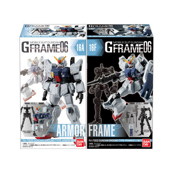 En attachant l’armure sur le cadre, vous pouvez compléter la figure. La série de chiffre Gundam mobile très détaillée "Mobile Suit Gundam GFrame" Série 6 sortira à l’échelle nationale aux magasins de jouets, magasins électroniques pour la maison, et de l’internet le 17 juin, 2019. Prix est ¥ 500 chaque (taxe exc).