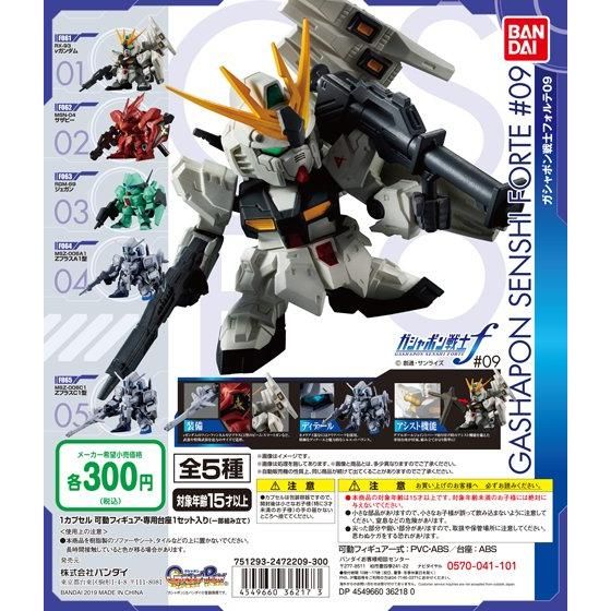La nouvelle série de senshi de gashapon "Mobile Suit Gundam Gashapon Senshi Forte 09" sortira dans tout le pays dans les magasins de jouet avec capsules distributeurs automatiques à partir de la cinquième semaine de juin 2019. Prix est ¥ 300 chaque (TTC.)