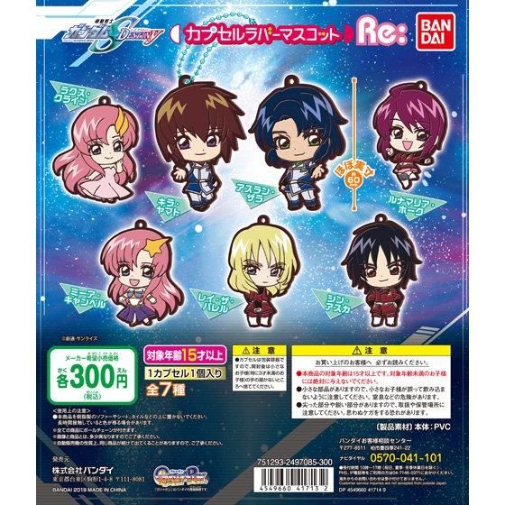 "Mobile Suit Gundam SEED DESTINY Capsule Rubber Mascot Re:" sera publié dans les magasins de jouets à l'échelle nationale et les détaillants dans les distributeurs automatiques capsule à partir de la deuxième semaine de Novembre 2019. Le prix est de 300 euros à chaque fois (taxe inc).