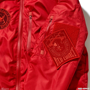 La couleur bordeaux "Modèle Char" a le patch personnel de Char sur la poitrine droite, et sur la poche à manches gauches il y a un patch brodé de visage de Zaku II de Char attaché avec un crochet amovible-Et-fixation de boucle. Également, à l'intérieur du dos un dessin symbolique de la marque personnelle de Char est imprimé.