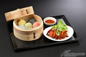 ・5 Petits pains à vapeur de couleur (Pétoncles・Truffe・Lin épicé・Crabe・Légumes à la coriandre)