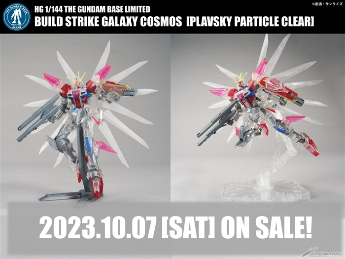 Le HG THE GUNDAM BASE Limited Build Strike Galaxy Cosmos [Plavsky Particle Clear] sera mis en vente le samedi 7 octobre dans les magasins THE GUNDAM BASE, les installations générales de GUNPLA.Il sera disponible pour 2 090 JPY (taxes incluses).