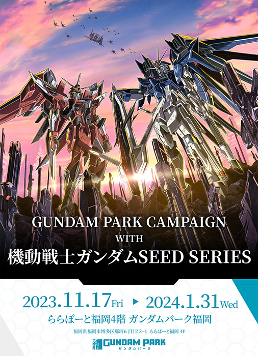 En outre, le Gundam Park Quiz Rally Project se tient actuellement au Gundam Park Fukuoka où se trouvent GUNDAM SIDE-F et la statue grandeur nature ν (Nu) Gundam.Ne manquez pas cette occasion d’obtenir un originalMobile Suit Gundam SEED FREEDOMautocollant (disponible selon le principe du premier arrivé, premier servi).
