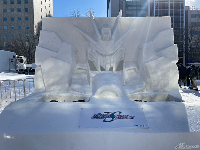 La statue de neige Rising Freedom Gundam est située sur le site Odori du Festival de la neige de Sapporo, et un stand spécial avec des décorations pour les produits connexes est installé en face de la statue de neige pour les ventes et les expositions.Le jour de l’ouverture, le dimanche 4 février, un grand nombre de spectateurs se sont rassemblés, formant de longues files d’attente.