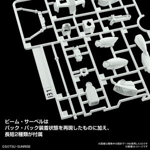Chacune des pièces a été soigneusement conçue, et leur configuration raffinée permet de recréer la palette de couleurs complexe du Gundam. Sa structure est conçue de manière à ce que les lignes de couture entre les pièces ne soient pas visibles de face. Deux types de sabres Beam de longueurs différentes et ceux qui peuvent être équipés sur le backpack sont inclus.