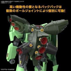 Les épaules ont des mécanismes de retrait pour élargir l’amplitude d’articulation des bras. Les sections du backpack, un composant crucial qui permet la grande mobilité de la Mobile Suit, peuvent être déplacées individuellement grâce à plusieurs rotules.
