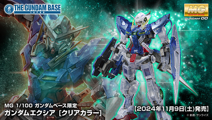 MG THE GUNDAM BASE Limited Gundam Exia [Clear Color] sera mis en vente le samedi 9 novembre dans les magasins THE GUNDAM BASE, dans les installations générales de GUNPLA. Il sera disponible au prix de 4 180 JPY (taxes incluses).