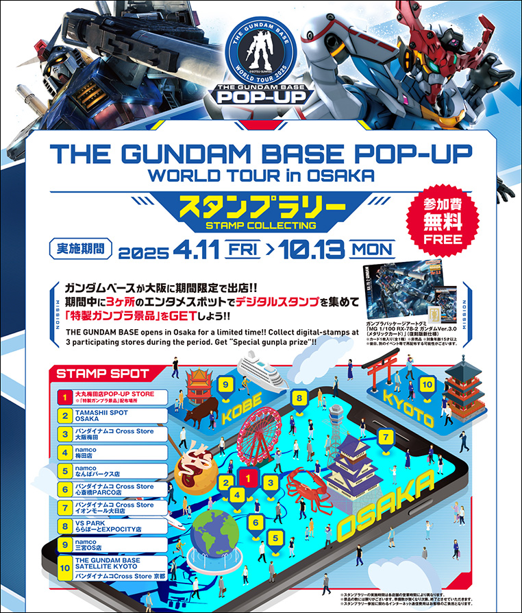 There will also be a stamp rally where you can collect digital stamps at three locations, including THE GUNDAM BASE POP-UP WORLD TOUR in OSAKA and TAMASHII NATIONS STORE Satellite in OSAKA 2025. You can win a special prize GUNPLA if you collect the stamps, so be sure to check it out, too.