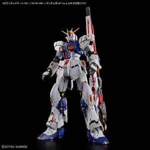 Neuf funnels sont stockés dans la section de la jupe, et les sous-manipulateurs peuvent être déplacés. Les propulseurs Sturm peuvent être détachés et les bras d’atterrissage peuvent être étendus pour terminer le processus de transformation en mode d’atterrissage. Le kit est également livré avec une base d’affichage dédiée et un kit vGundam fabriqué à la même échelle.