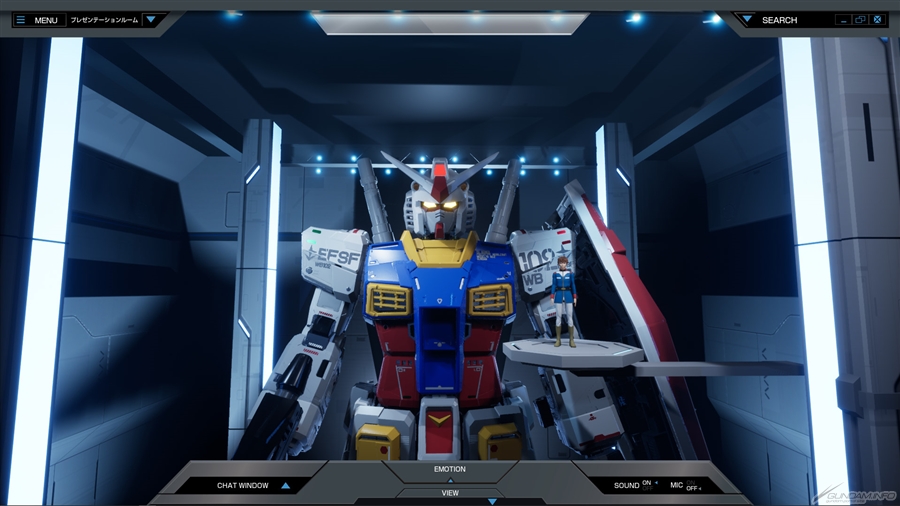 La zone principale où les présentations ont lieu.Les avatars de chaque visiteur seront automatiquement placés dans des sièges spéciaux pour profiter de la meilleure expérience de visionnage lors de la présentation de la prochaine génération de GUNPLA : la qualité parfaite 1/60 RX-78-2 GUNDAM.