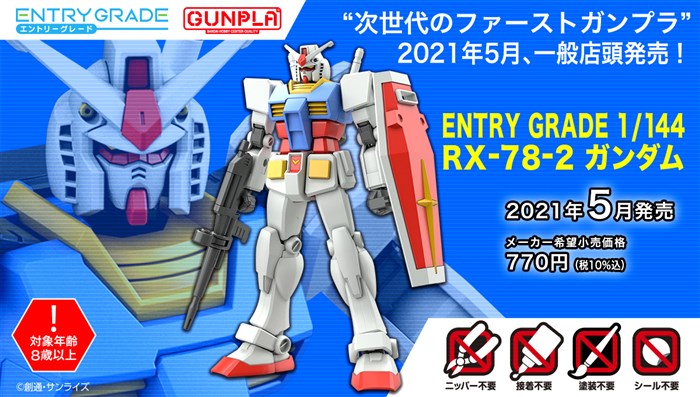 Le Gundam de classe d’entrée, un kit qui peut facilement être assemblé comme un puzzle est disponible en May.Il sera disponible pour JPY 770 (taxe incluse).