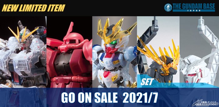 Quatre nouveaux articles seront en vente en juillet 2021, à la General GUNPLA installations de la BASE GUNDAM, y compris le HG THE GUNDAM BASE Limited Char Aznable Zaku II [Metallic] et RG v Gundam HWS [couleur claire].