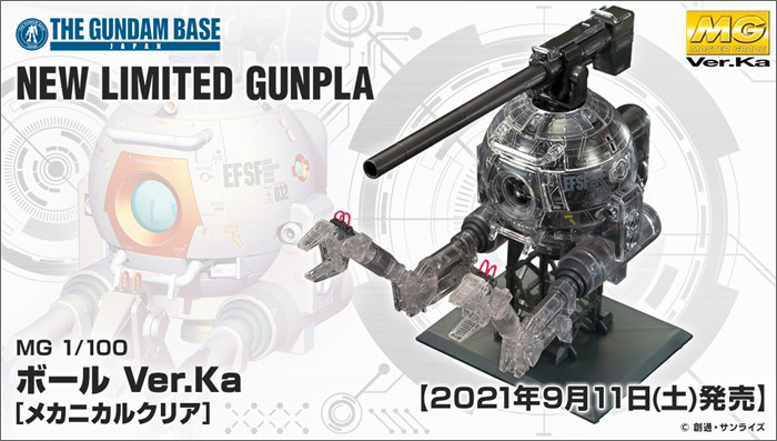 Le MG ball ver. ka [mécanique Clear] va en vente aujourd’hui le samedi 11 septembre 2021 à la BASE GUNDAM, les installations générales GUNPLA.Il sera disponible pour 2 750 JPY (taxes incluses).
