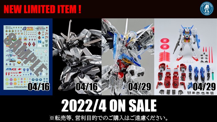 Des éléments tels que le Gundam BASE LIMITED Eclipse Gundam [couleur claire] et le GUNDAM BASE LIMITED MG Gundam AGE-1 Wear System set [couleur claire] aller en vente le vendredi 29 avril, et le HG Gundam Marchosias [revêtement de sang de fer] sera mis en vente en mai, alors assurez-vous de les vérifier, aussi.