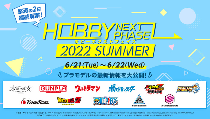 HOBBY NEXT PHASE 2022 été, un événement en ligne hébergé par BANDAI SPIRITS hobby division, aura lieu le mardi 21 juin, et le mercredi, juin 22nd.