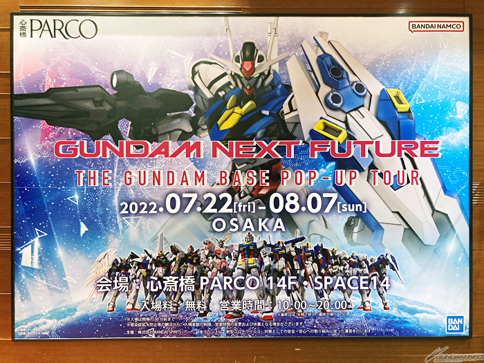 GUNDAM NEXT FUTURE-THE GUNDAM BASE POP-UP TOUR-, un événement pop-up qui est une version condensée du charme de l’installation complète officielle centrée sur GUNPLA connu sous le nom de la BASE GUNDAM, est actuellement ouvert à Shinsaibashi PARCO à Osaka.L’entrée est gratuite.