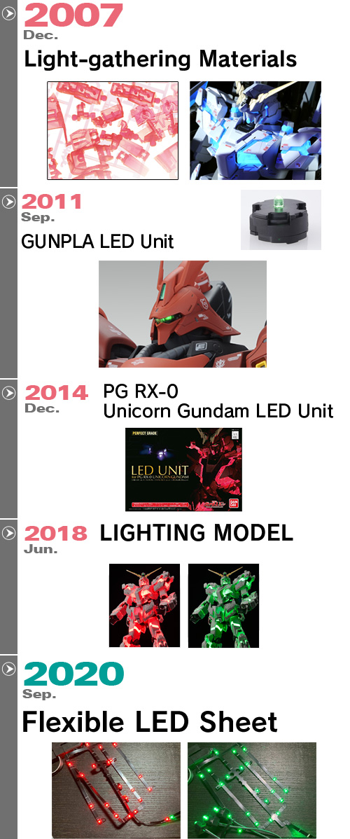 "An LED is placed on the tip of the stands. The stands and the power unit, which functions as a display base, are connected with wires and light-up effects can be enjoyed even when they are far away."