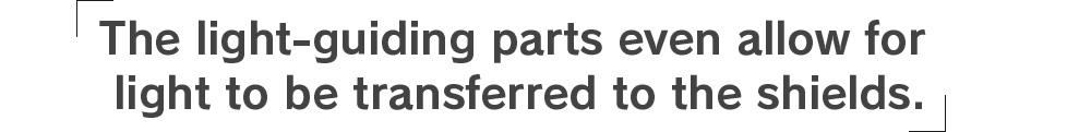 The rod-shaped connectors on the shields are clear light-guiding parts.