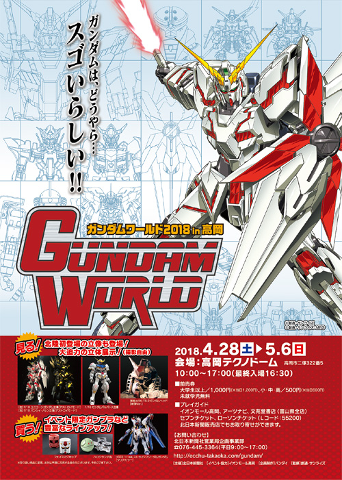 « Gundam monde 2018 dans Takaoka », un événement où vous pourrez découvrir le monde de Gundam première main, se tiendra à la coupole de Techno de Takaoka dans Toyama à partir du 28 avrilth(Sat).