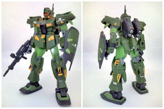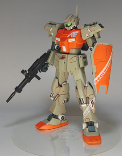 I didn't have a GM kit handy, so I built it with a GM Custom kit. With Zaku-style coloring and orange vernier covers, it gives off a bit of a GM Striker feel, but I think that fits.