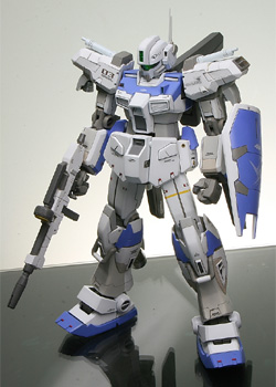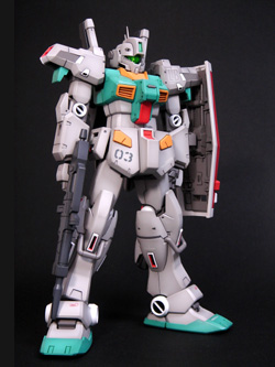 A unit delivered to Londo Bell in U.C. 0093. An older unit pressed back into service due to budgetary limitations, its generator and backpack are nonetheless updated to their most modern versions. To keep up appearances, it's painted in the RGM-86R's coloring. ... Is what I imagined. It was quite enjoyable to put so much thought into the coloring and setting.