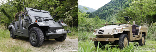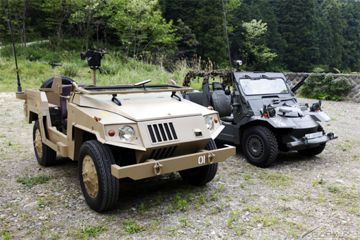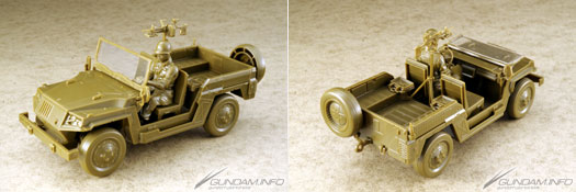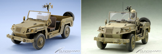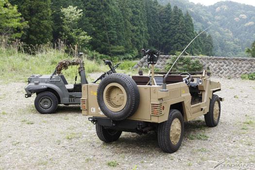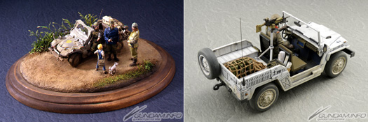 A photo album featuring shots of the 1/1 models of the EFGF’s M72 half-ton truck Lakota and Zeon’s light truck Sauropelta, featured in