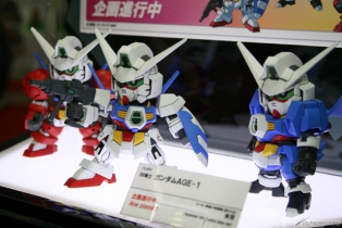 On display are a wide variety of items, with Bandai's booth featuring the Mobile Suit Gundam AGE, Mobile Suit Gundam UC, and Gunpla Builders lines.
