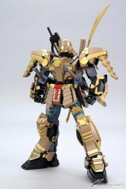 The MG Musha Gundam Mk-II Tokugawa Ieyasu ver., inspired by Tokugawa Ieyasu's 'Kindamigusoku', includes plated parts and special 'traditional Japanese stickers' to replicate its heavy-yet-glimmering form.