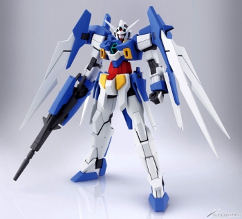 『機動戦士ガンダムAGE』より、第二世代の主役機「ガンダムAGE-2 ノーマル」が早くも登場!色プラとホイルシールにより設定カラーリングを再現!胸部、胴部にはボールジョイントが導入されているほか、特徴ある4枚の羽は、2軸可動機構を採用!さらに、躍動感を与える手首パーツが付属する。