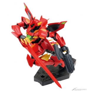 Mobile Suit Gundam AGE's crimson mobile suit from Asemu's arc is here in HG! The tail parts can be wielded as a sword, and it includes the first Veigan beam rifle and special manipulators to grip it.