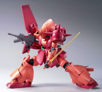 アッシマーの後継機であり、進化した円盤型MA状態への変形を一部差し替えパーツで再現するほか、MA状態でディスプレイするための専用ベースが付属!専用バーをジョイントさせることにより他のMSを積載させることも可能!