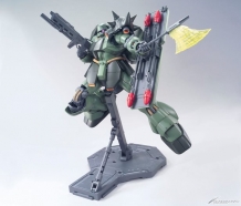 Its design as a successor to the Zaku is reproduced in the detail only MG can bring, and its free movement allows for a wide range of action poses. A soft material is used to better recreate the power pipes' texture.