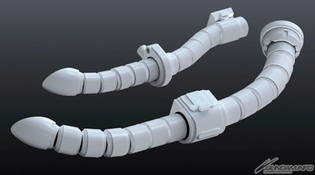 特徴的なモノアイは、ボールジョイントにより可動、カバーはクリアパーツで再現!さらに頭部のブーメラン・カッターは脱着式で計10基が付属!