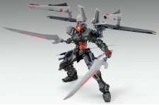 黒と赤を基調としたカラーリングが、成形色で忠実再現されているほか、背面に装備された「ノワールストライカー」には、展開、武器の分離など多彩なギミックが搭載されている。
